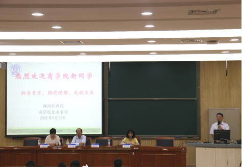 2021级新生代表工商管理实验班王雨晴同学代表新生对学院领导、老师以及班导表达了感谢,阐述了对大学生活的憧憬和期待,愿自己和所有新生的大学四年都可以做到“来时不悔梦归处,别时只念时光匆”。