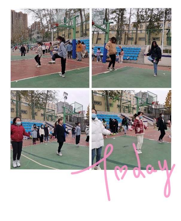 下午两点,运动会准时开始。首先进行的项目是踢毽子和跳绳,这两个项目都是我们在儿时必玩的项目,随着裁判员的一声令下,比赛开始!同学们随即投入激烈的比赛之中。