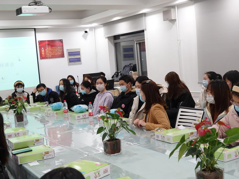 于科研楼410召开贫困生座谈会。与会人员有2020级辅导员赵御彤、3位优秀学姐学长代表,分别为18级工商管理二班刘怡婷、退伍回校的赵敏学姐、吴凯学长及色情网