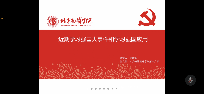 首先由学生党员孙欣杰带领大家对近期学习强国大事件进行逐一回顾。第一部分的内容是学党史悟思想办实事开新局,以优异成绩迎接建党100周年。孙欣杰同志结合习近平总书记在党史学习教育动员大会上的重要讲话为支部同学讲解学习党史的重要性和关键性。第二部分是深入学习全国脱贫攻坚总结表彰大会上习近平总书记的重要讲话。“这是中国人民的伟大光荣,是中国共产党的伟大光荣,是中华民族的伟大光荣!”习近平总书记在全国脱贫攻坚总结表彰大会上庄严宣告,我国脱贫攻坚战取得了全面胜利,完成了消除绝对贫困的艰巨任务,创造了又一个彪炳史册的人间奇迹。在孙欣杰同志在讲解下,支部党员们深感自豪,并纷纷表示要把个人的奋斗目标融入到社会进步,国家发展之中。第三部分是讲述关于学习强国的应用,学习强国是非常好的学习新思想、学习时事政治、学习党史以及党的理论的平台,大家要认真、充分学习。