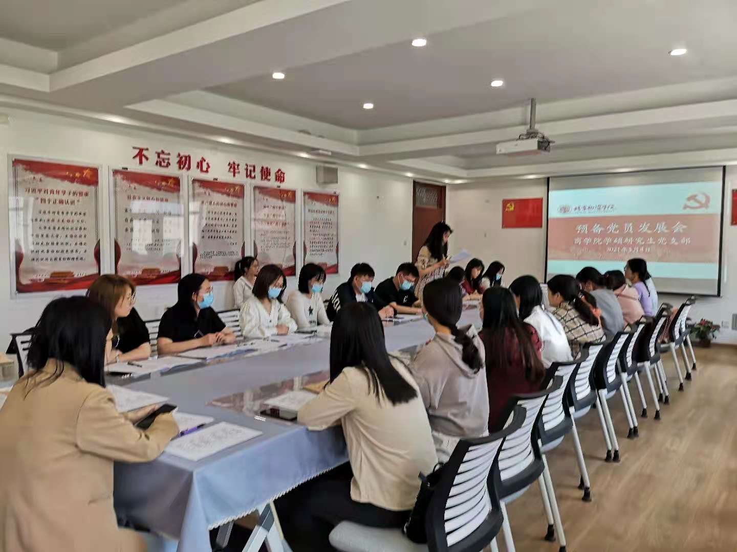 学硕研究生党支部全体成员和发展对象。此次大会由支部书记王洋老师主持。大会的议题是讨论关于接收张美娟等13位同志为预备党员的问题,并集体学习习近平总书记视察清华大学时的重要讲话精神。