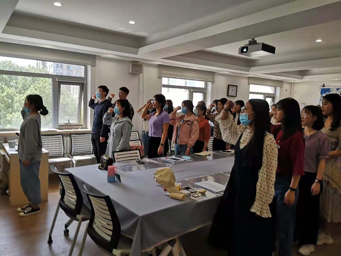 接着,举行新党员宣誓仪式,仪式在庄严的《国际歌》声中进行,全体党员在付楠楠同志的带领下,举起右手,面向党旗庄严宣誓,响亮的宣誓声萦绕在教室,表达了全体党员坚定的入党信念和为共产主义事业奋斗终生的决心。