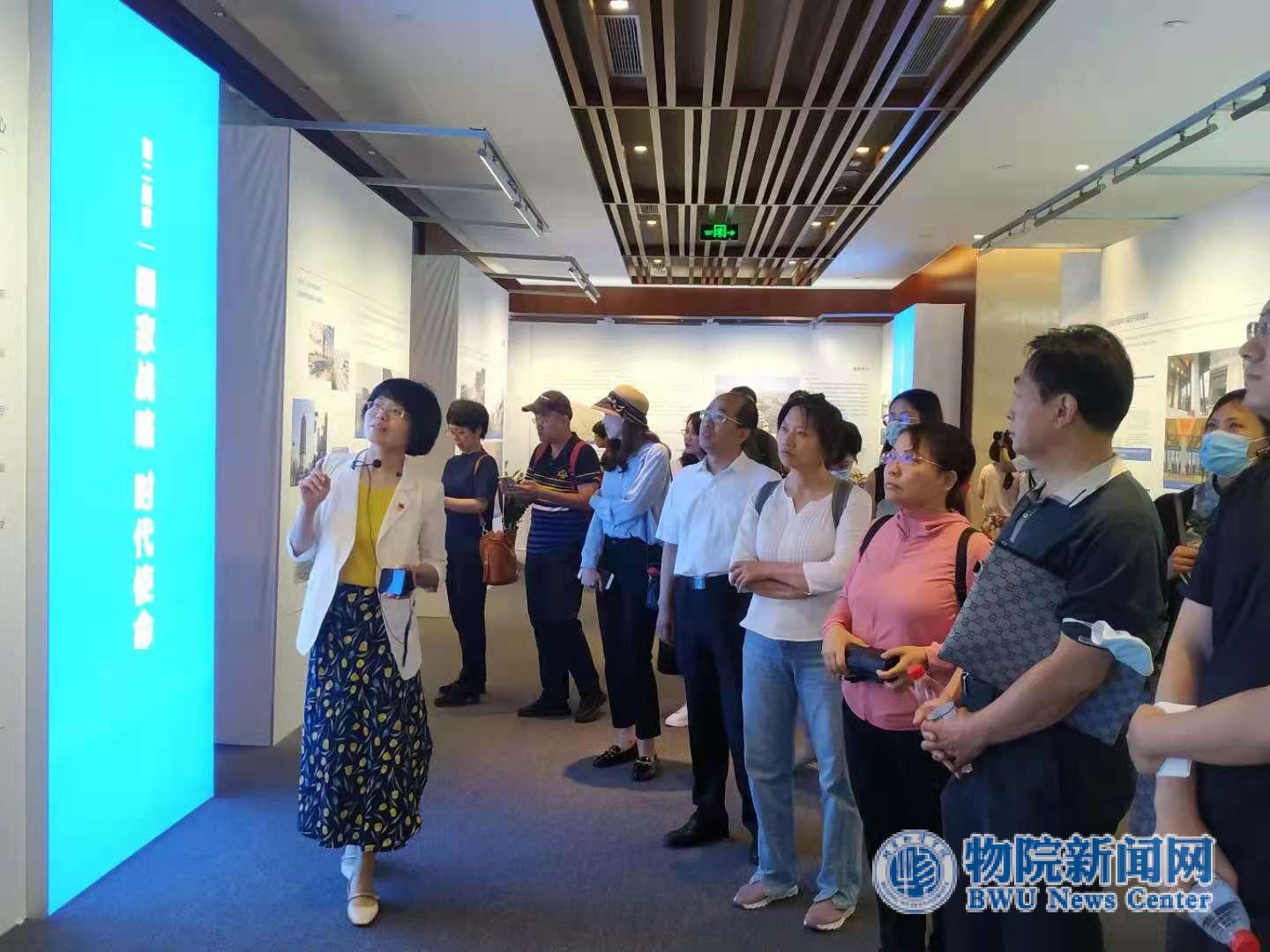 副主任车欣薇详细介绍了以“千年之城,开放新篇”为主题的北京城市副中心“两区”建设成就展。通过“通济天下,京畿重镇”、“国家战略,时代使命”、“对外开放,接轨国际”、“千年大计,砥砺前行”四大主题板块的参观学习,大家深刻感受到了副中心“两区”建设在制度创新、园区开放、优化营商环境、对外交流交往等方面取得的丰硕成果,进一步拓宽了思路,明确了自身研究定位,也增强了投入自贸区研究的信心。