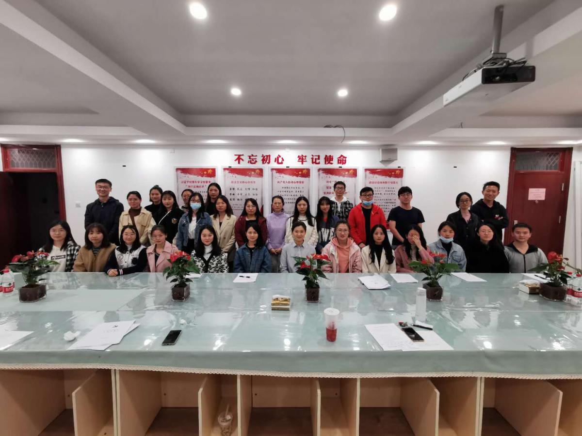 研究生党支部全体成员和发展对象。此次大会由支部书记王洋老师主持。大会的议题是讨论关于接收石珊、王俐、钱正来、郭星涛、刘秀荣、韩竹、纪佳欣、胡耀坤、付楠楠、王焕焕、陈宇恬11位同志为预备党员的问题。