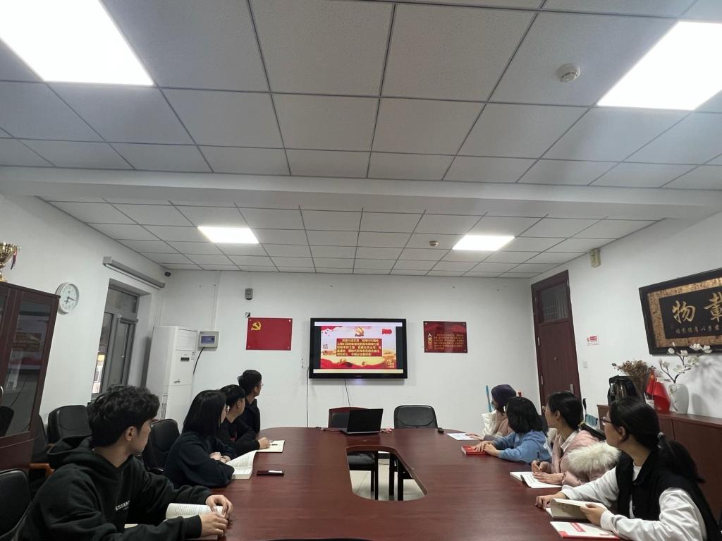 党委组织师生在线下与线上同时开展学习活动。学院党委副书记陈霄英、全体辅导员及部分学生党员代表共同在402会议室观看,各专业学生线上同步观看报告会。