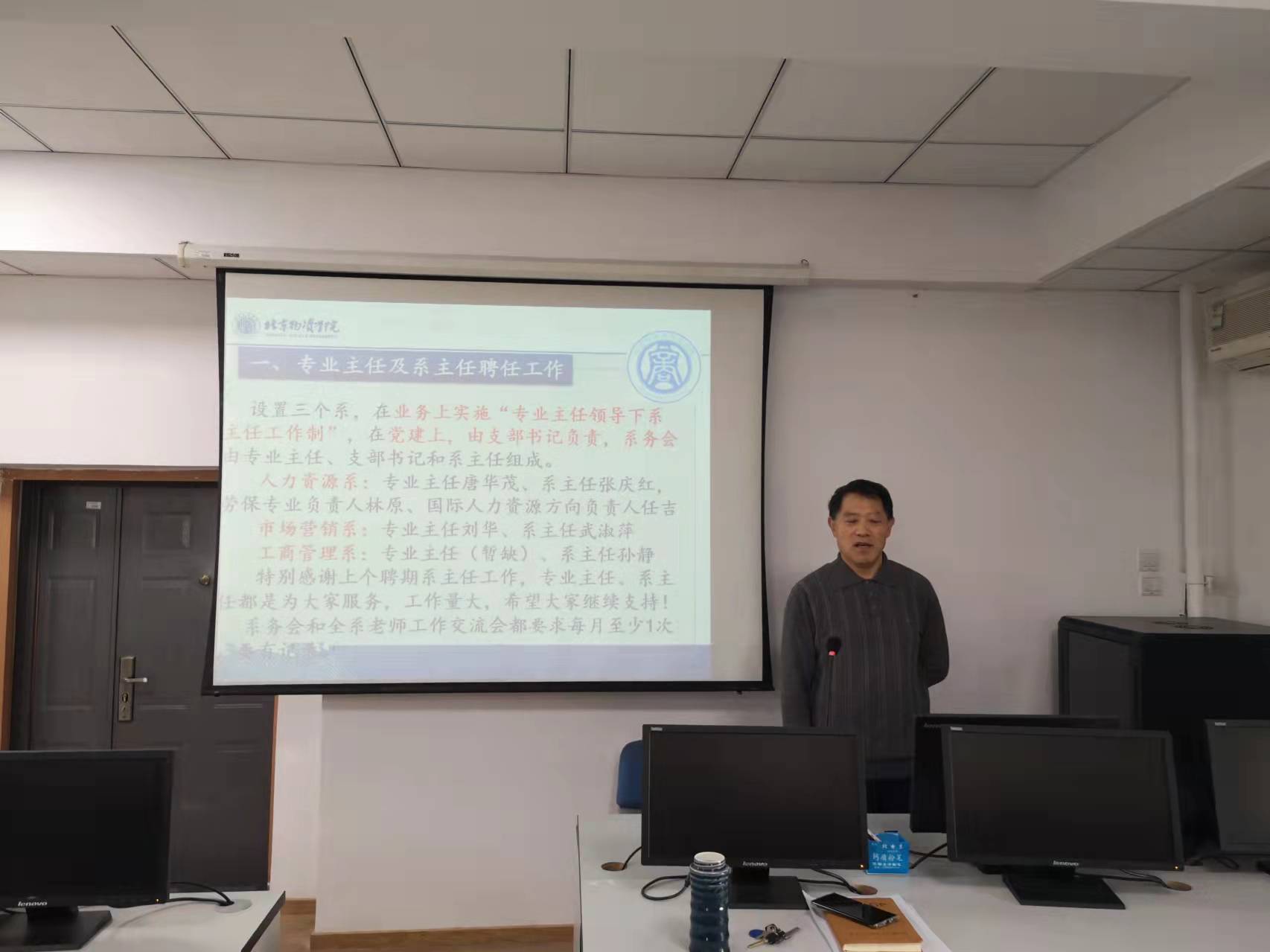 接着,魏书记部署了假期疫情防控、意识形态与安稳工作,要求全体教职工坚持非必要不出京原则,提倡教职员工在京过节。他总结了2021年学院党建工作的考核情况,指出目前学院基层党组织建设中的重点和难点,他提出新时期做好学院党建工作的七点要求:提高政治站位、强化责任意识、担当意识和规矩意识、增强集体荣誉感、提高工作规范性、做好本职工作、讲求团结合作。他要求各支部对学校反馈的问题务必重视,积极整改,对标《北京普通高校党建与思想政治工作基本标准》的各项要求,扎实做好迎接党建检查的各项工作。