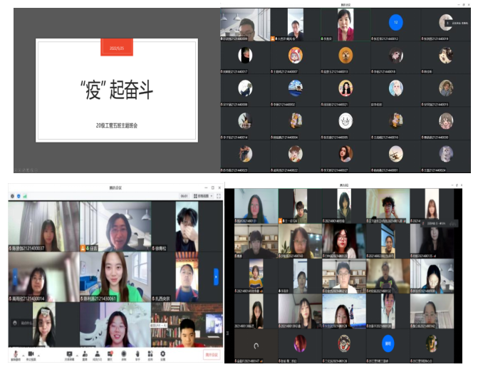 党委发起"疫起奋斗 守护心灵”线上活动,开展有特色的网络教学工作之外,通过线上比赛指导、毕业设计(论文)指导、班级会议、考研帮扶等形式,组织各种形式的线上陪伴活动20余次。