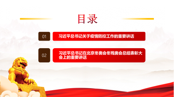 此次会议围绕《习近平总书记关于疫情防控工作的重要讲话》和《习近平总书记在北京冬奥会冬残奥会总结表彰大会上的重要讲话》两方面内容展开。