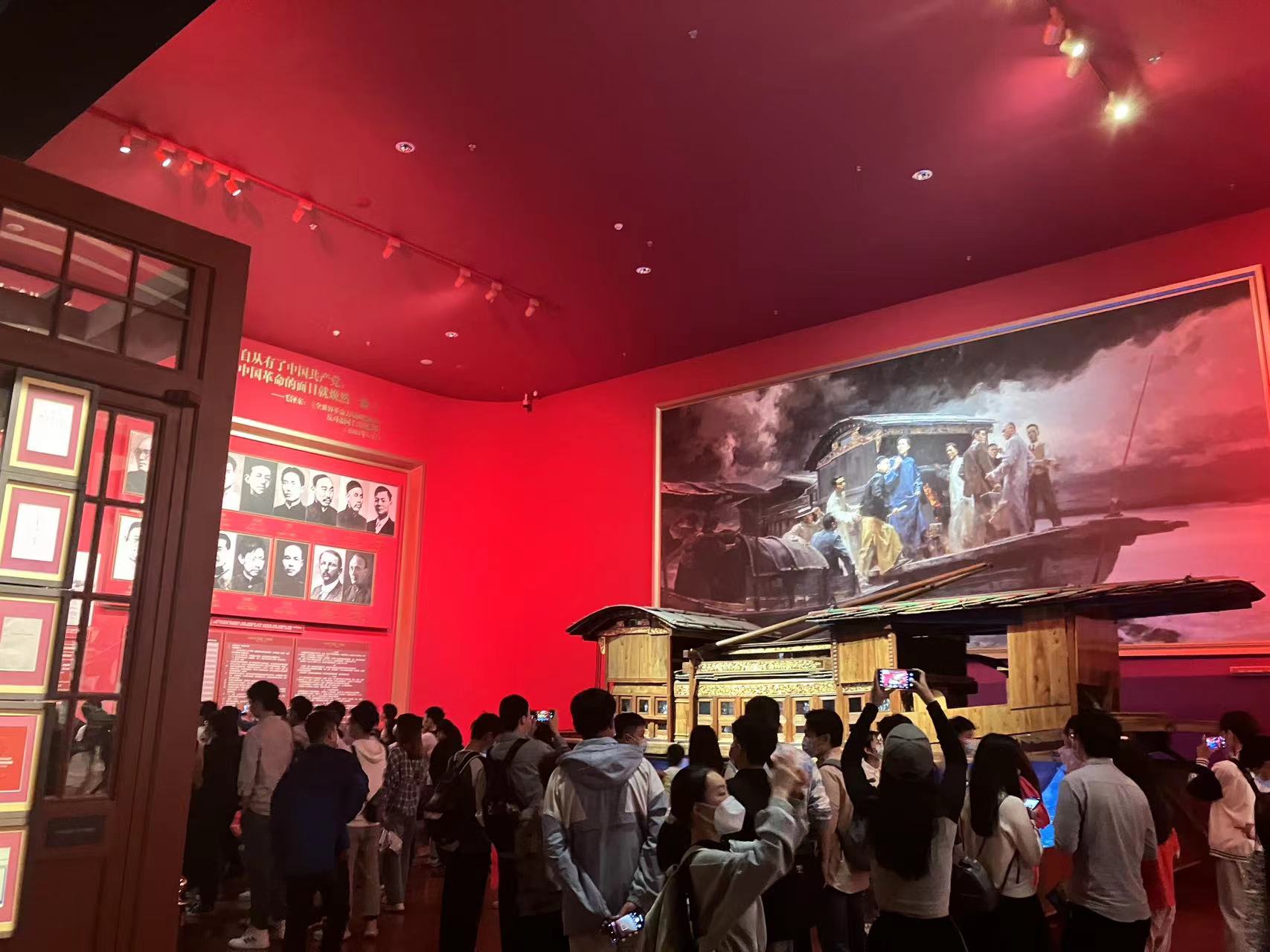 一众学生在学院统一组织下前往中国共产党党史展览馆参观学习。