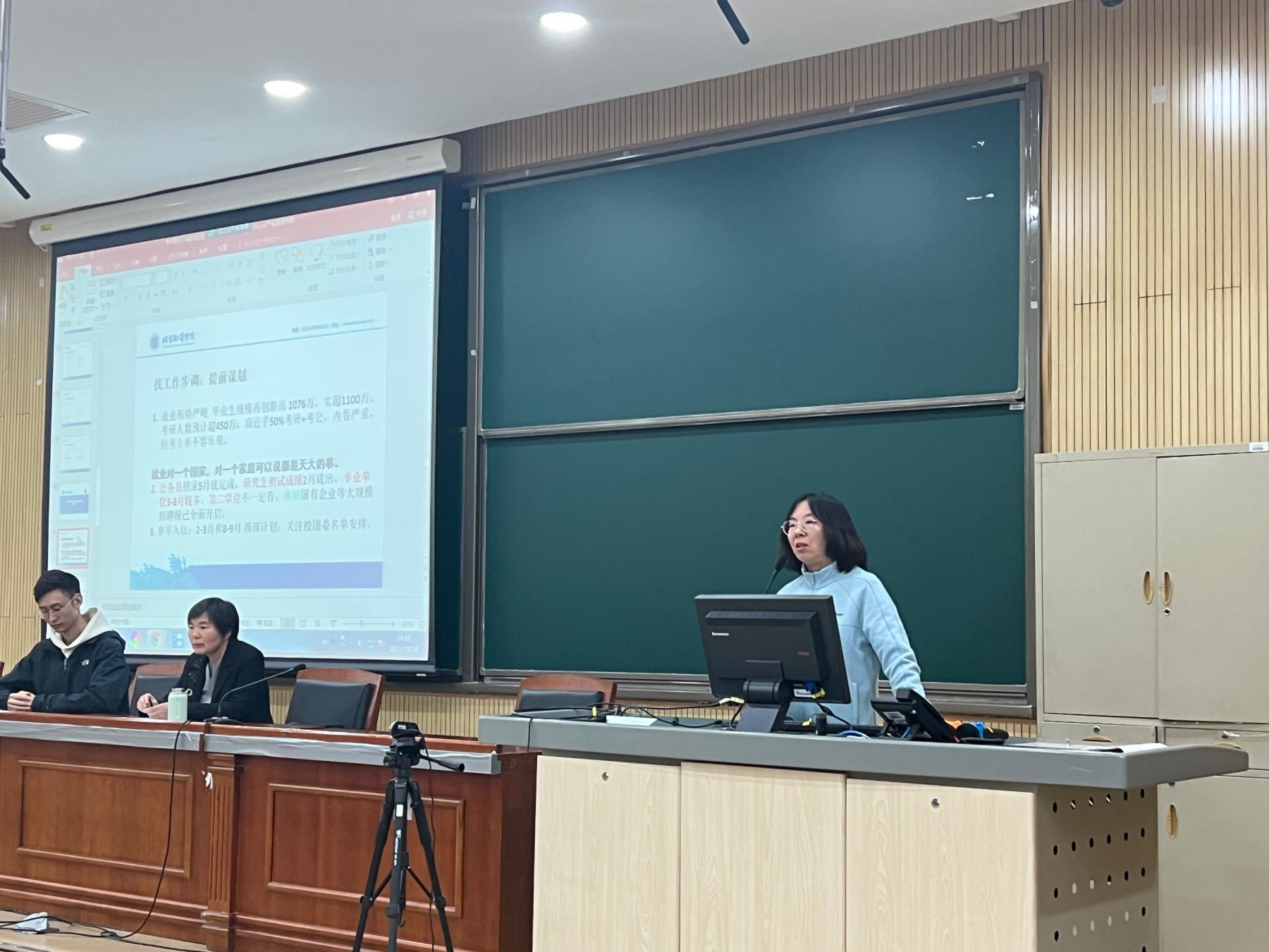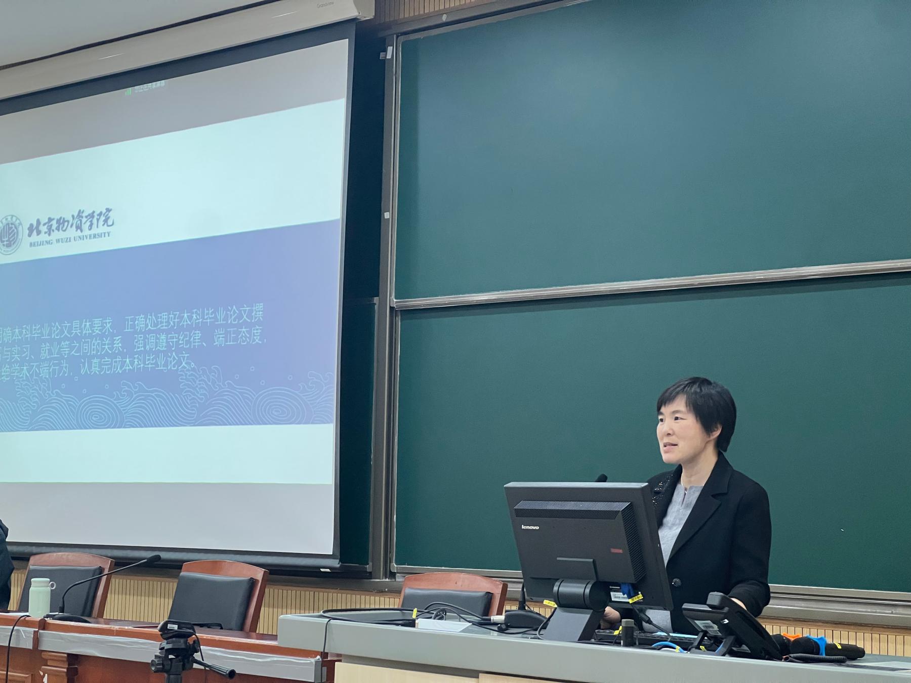 副院长李燕荣介绍了毕业实习和毕业论文相关重要事宜。并从毕业论文工作安排、基本要求、具体流程以及注意事项等方面进行详细介绍,为学生们提供了专业性、指导性的建议。她重点介绍了毕业实习和毕业论文撰写等的最新修订颁发和相关事宜,并建议毕业生及早关注本人培养计划完成情况,及时完成所有模块的必修部分。她希望学生能够按照要求撰写论文,注重规范性,合理选择研究方法,确保按时完成相关任务。
