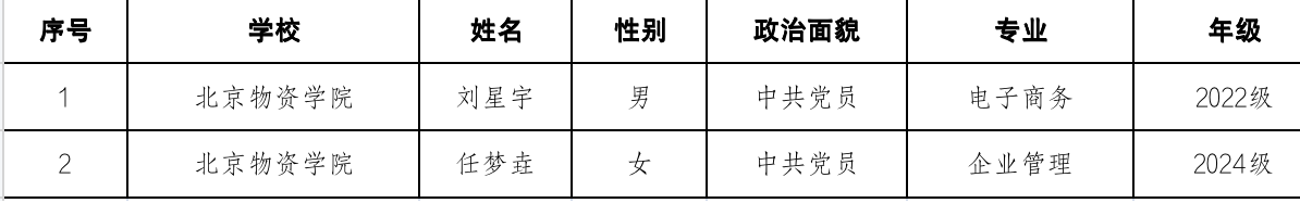根据《关于在全市高等学校开展2024-2025年度市级三好学生、优秀学生干部认定工作的通知》的文件精神,学院本着公平、公正、公开的原则,经本人申请、答辩,学院最终审核,拟推荐以下同学成为2024-2025年度“北京市三好学生”和“北京市优秀学生干部”推荐人选。现将院级评选结果予以公示,最终结果以校级公示为准。